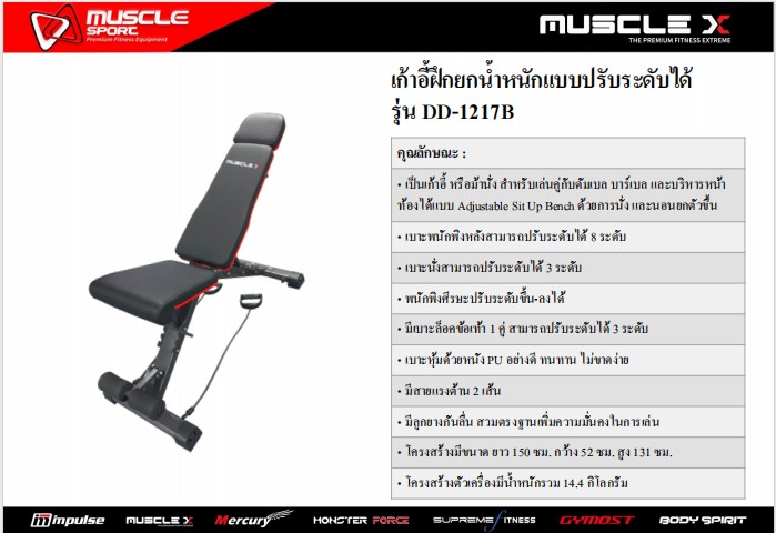 เก้าอี้ฝึกยกน้ำหนัก MUSCLE X รุ่น DD-1217B