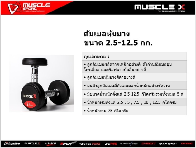 • มีน้ำหนัก 2.5 / 5 / 7.5 / 10 / 12.5 kg